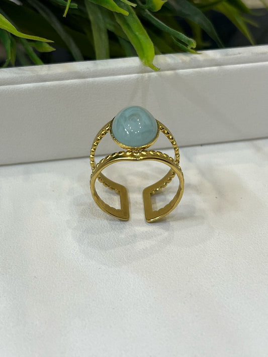 Gold Plated Adjustable Ring with Aqua Blue Stone - Dainty & Elegant