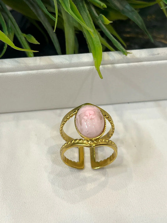 Gold Plated Adjustable Ring with Pink Stone - Dainty & Elegant